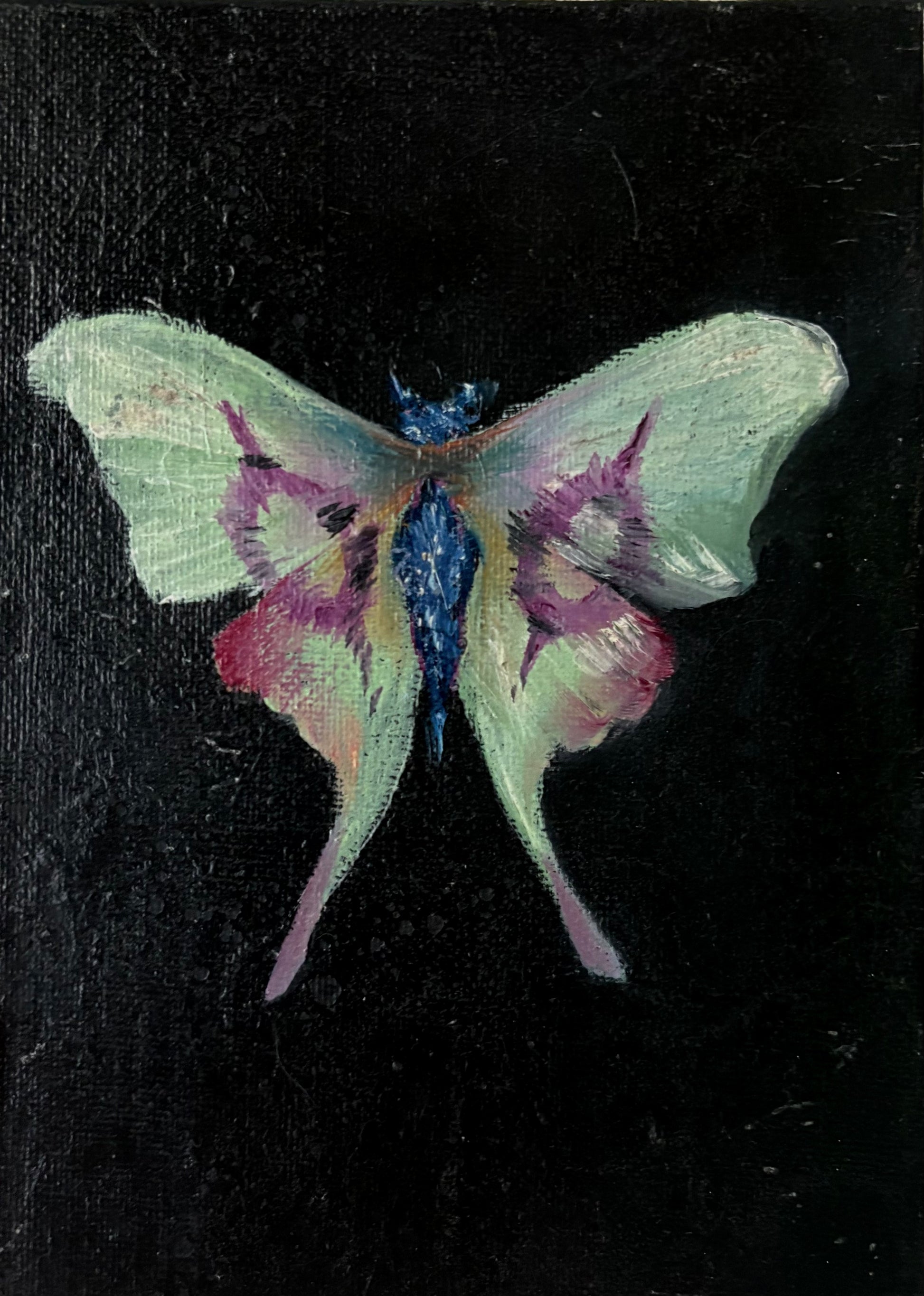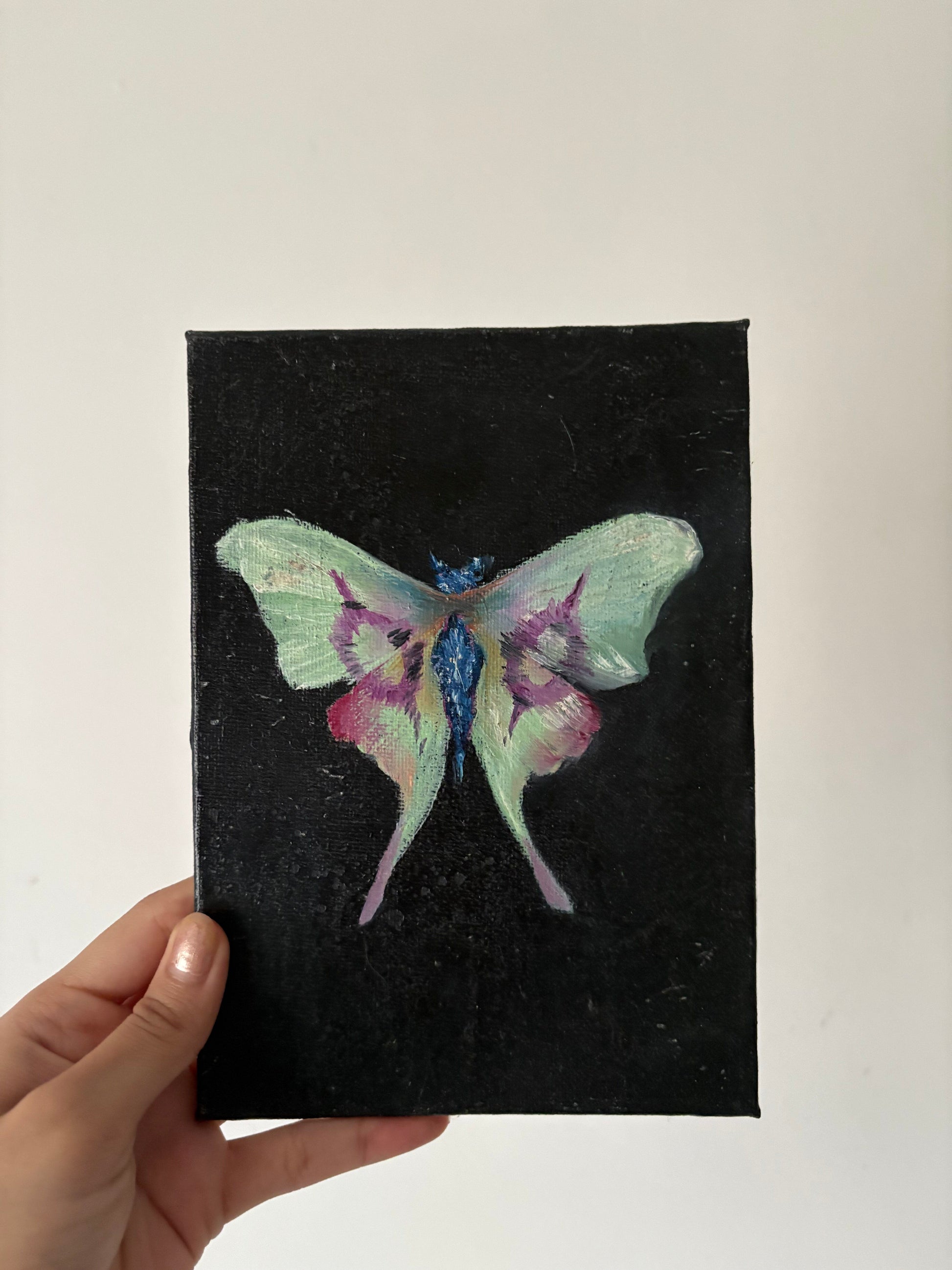 A hand-painted original artwork created with acrylics on a 7 x 5 inch cotton canvas.