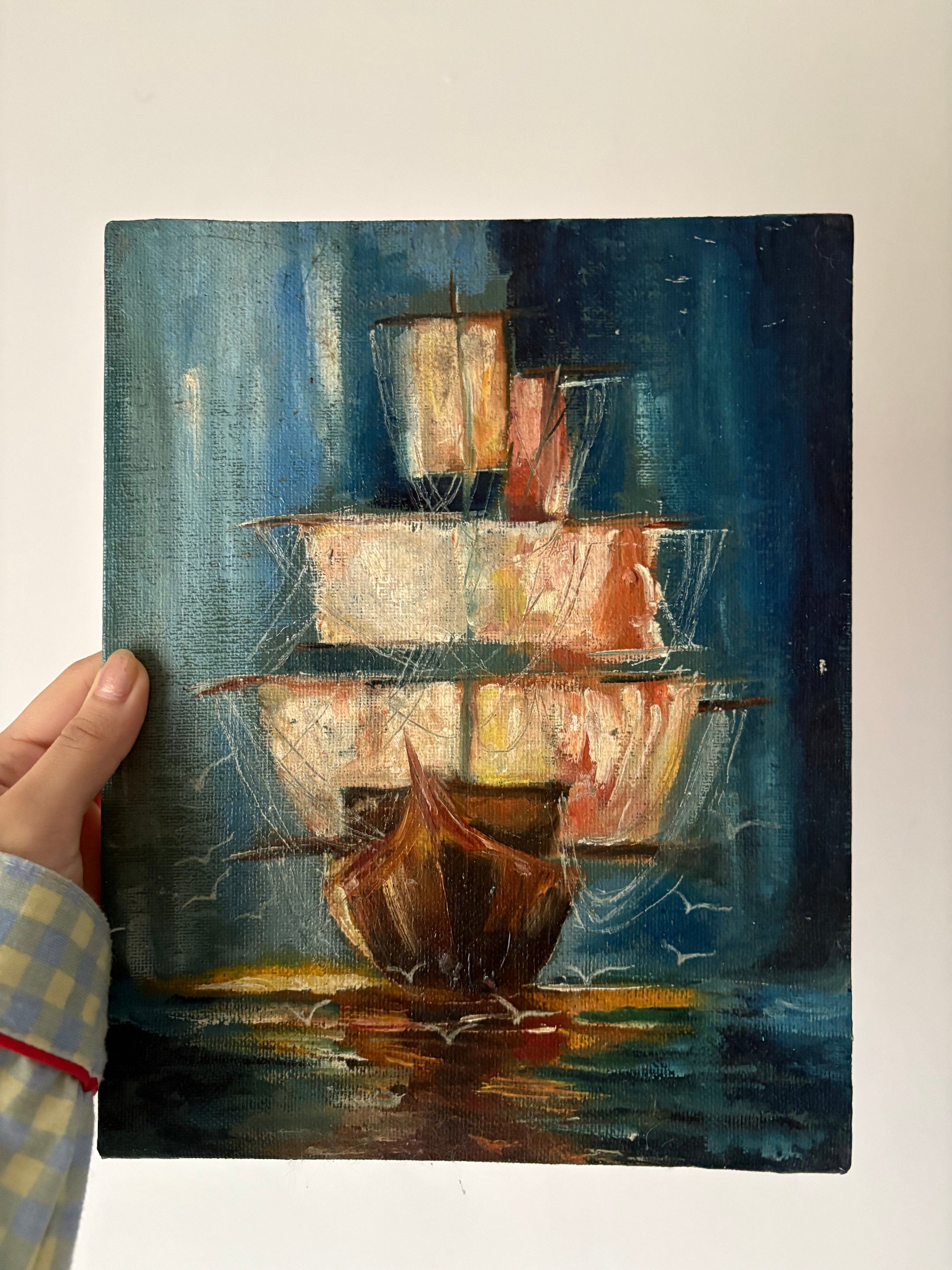 A hand-painted original artwork created with oil paints on a 10" x 8" cotton canvas.